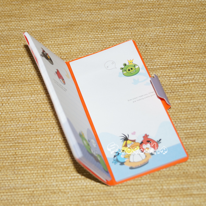 Каждая страница украшена симпатичными персонажами из игры Angry Birds.