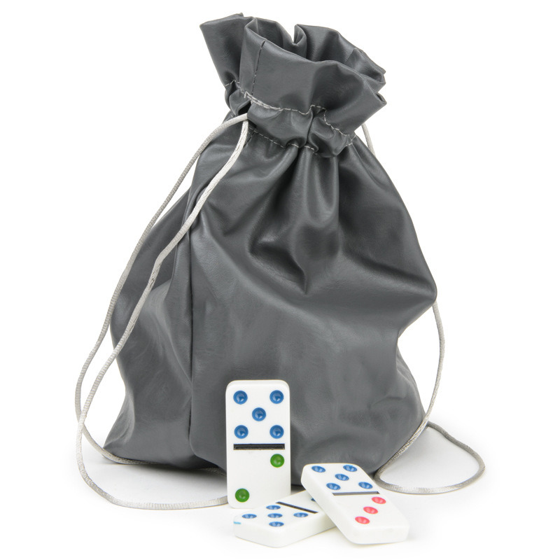 Домино с цветными точками в сером мешочке из кожзама (9 точек)