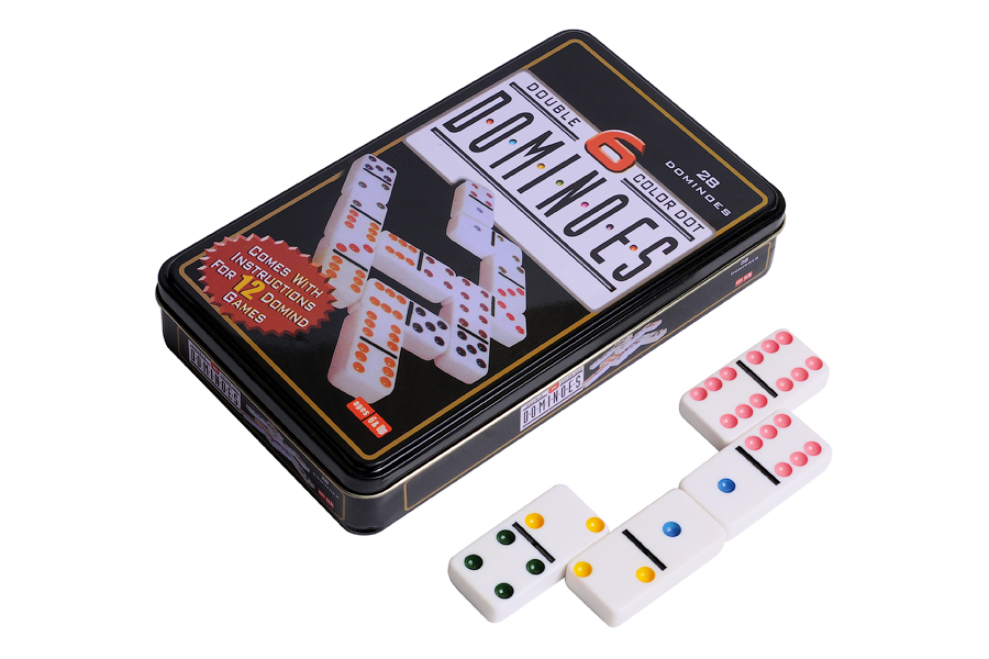 Если вы хотите играть в домино с друзьями, купите Домино в темном железном боксе. В этом наборе 28 костей из высококачественного пластика, на кости нанесены разноцветные точки. В игре могут участвовать не менее двух игроков (обычно 2 - 4). Если играют вдвоем, участникам раздают по 7 костей.