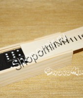 Костяшки из пластика, упакованы в деревянную коробку. |