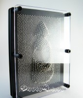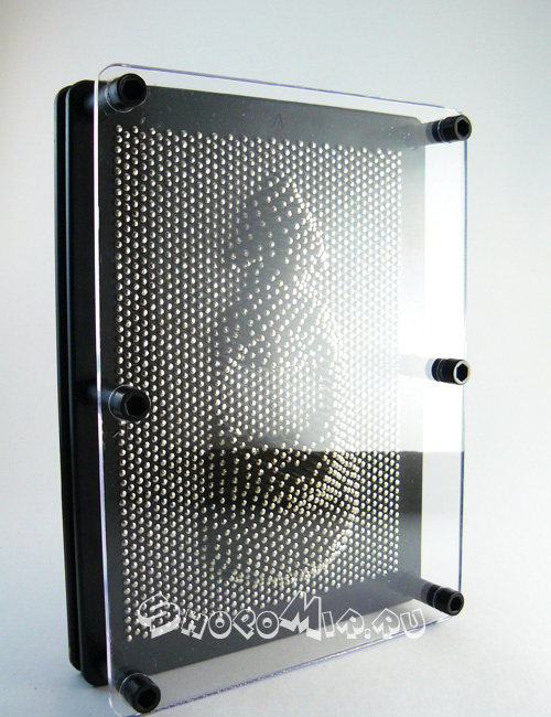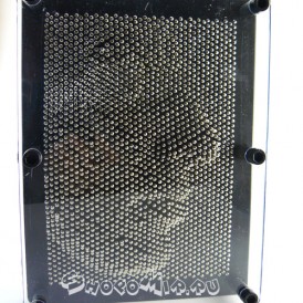 Оригинальное приспособление представляет собой пластину среднего размера, на которой укреплены иголочки. Чтобы изваять новый шедевр необходимо просто легко нажать в нужном месте пальцем. И тут же на гладкой поверхности появится отпечаток, который послужит началом искусного творения.