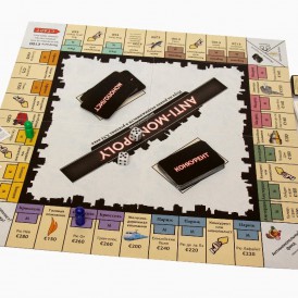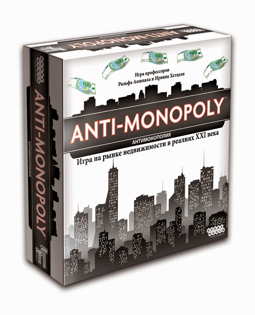 «Антимонополия» — другой взгляд на «Монополию», созданную почти век назад. Сюжет взят из заголовков современных газет: мелкие предприниматели пытаются выжить в неравной борьбе с безжалостными монополистами. В мире реального бизнеса все участники рынка борются за прибыль, но добиваются её разными путями. Конкуренты сдерживают цены, чтобы получить доход за счёт объёма продаж, а монополисты уничтожают конкурентов, чтобы потом уже завысить цены, как им угодно.