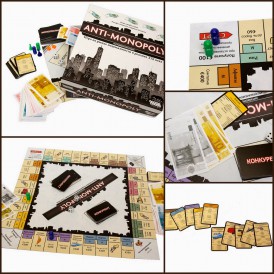 В «Антимонополии» игроки поделены на конкурентов и монополистов и подчиняются разным правилам на пути к богатству. Именно эта идея чёткого разделения игроков на группы и подчинения их разным правилам делает «Антимонополию» революционной игрой в её консервативном жанре!