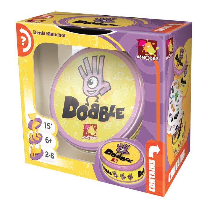 Игра для желающих повеселиться и проверить своё зрительное восприятие, внимательность и реакцию. Оригинальная круглая баночка содержит 55 карт с различными сочетаниями картинок. Каждая карта уникальна, но обязательно имеет один (и только один) общий рисунок с любой картой из колоды. Именно на поиске этого совпадения и построена настольная игра Доббль.