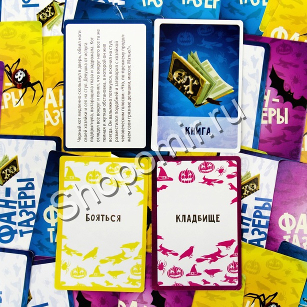В одной страшной, страшной игре, где нет ни начала, ни конца, все было как обычно. Карточки, которые передают захватывающую историю, карточки с картинками, которые пробуждают фантазию. Включите воображение, логику, рассудок и сочините свое продолжение истории. Как играть?Раскладываете карточки по колодам, голубые-предметы и герои, желтые-действия, фиолетовые-место события. Потом, каждый поочередно тянет карточку и каждой колоды и начинает свою историю рассказа. Кому пригодитсяЛюбителям посочинять! Приходите к нам, чтобы фанты купить! |