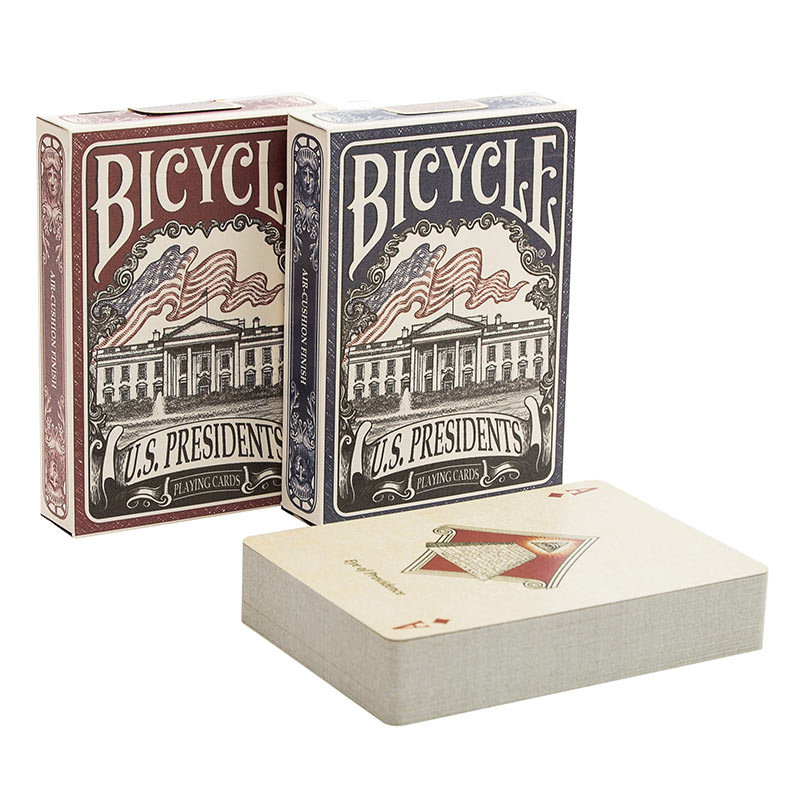 Карточный набор, позволяющий сделать игру не интересной, но еще и красивой, с эстетической точки зрения. Bicycle US Presidents вполне подойдут для коллекционеров, ведь своим внешним видом и качеством исполнения находятся далеко впереди существующих экземпляров. При этом, ими вполне можно играть, ведь они выполнены из прочного картона и покрыты пластиковым напылением. Это позволяет не беспокоиться о сохранности и случайном попадании жидкостей – карты это выдержат.