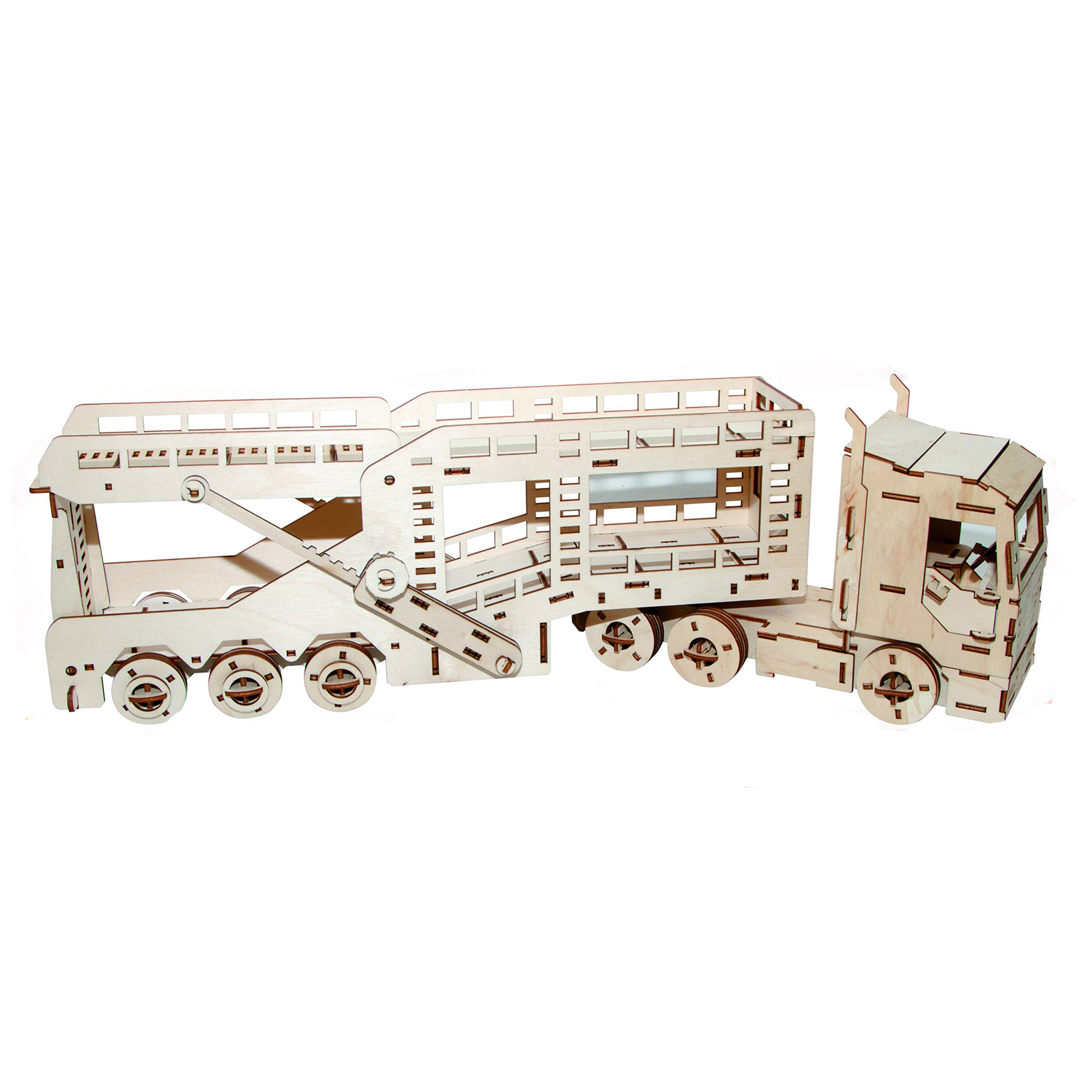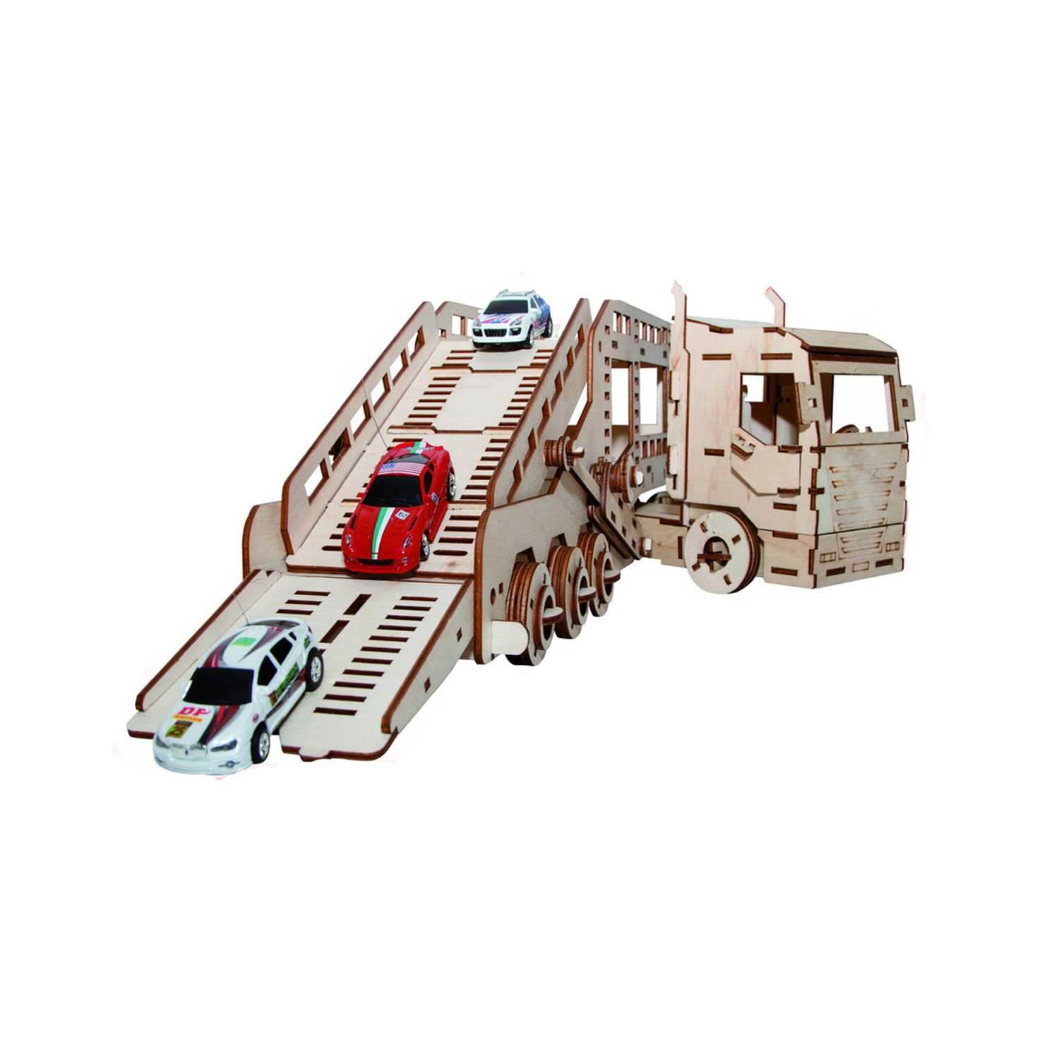 Механический конструктор из дерева автовоз может передвигаться самостоятельно. Упакуйте ваш автопарк и перевозите его куда угодно.