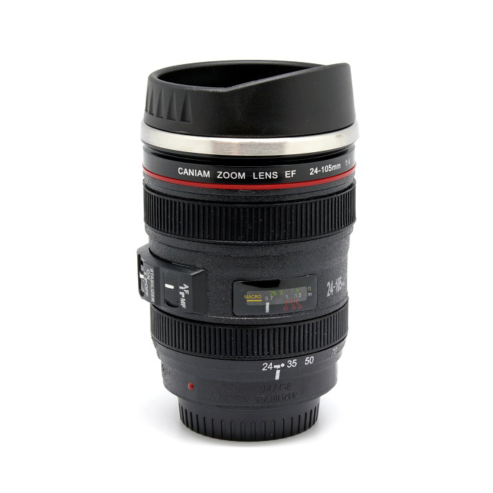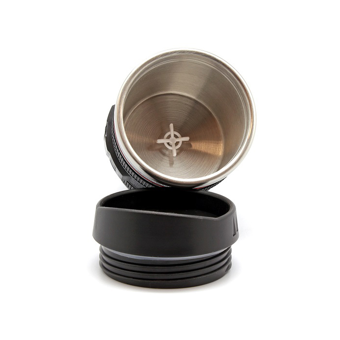 Функциональная кружка с виду обычный фотообъектив. Не только перемешает ваш напиток, но и сохранит тепло. Оценят любители путешествий, фотографы.