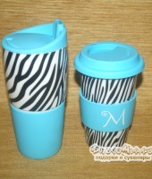 Интересный черно-белый принт под зебру придает ей трогательный и очень милый вид. Вставка из голубого силикона защищает руки от излишне горячей керамической поверхности, а оригинальная крышка надежно убережет напиток от проливания.