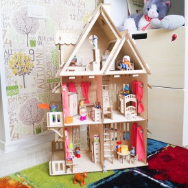 Высота каждого этажа: 21 см, что позволяет свободно играть ручками в доме. Домик и мебель подходят для кукол высотой до 18 см.