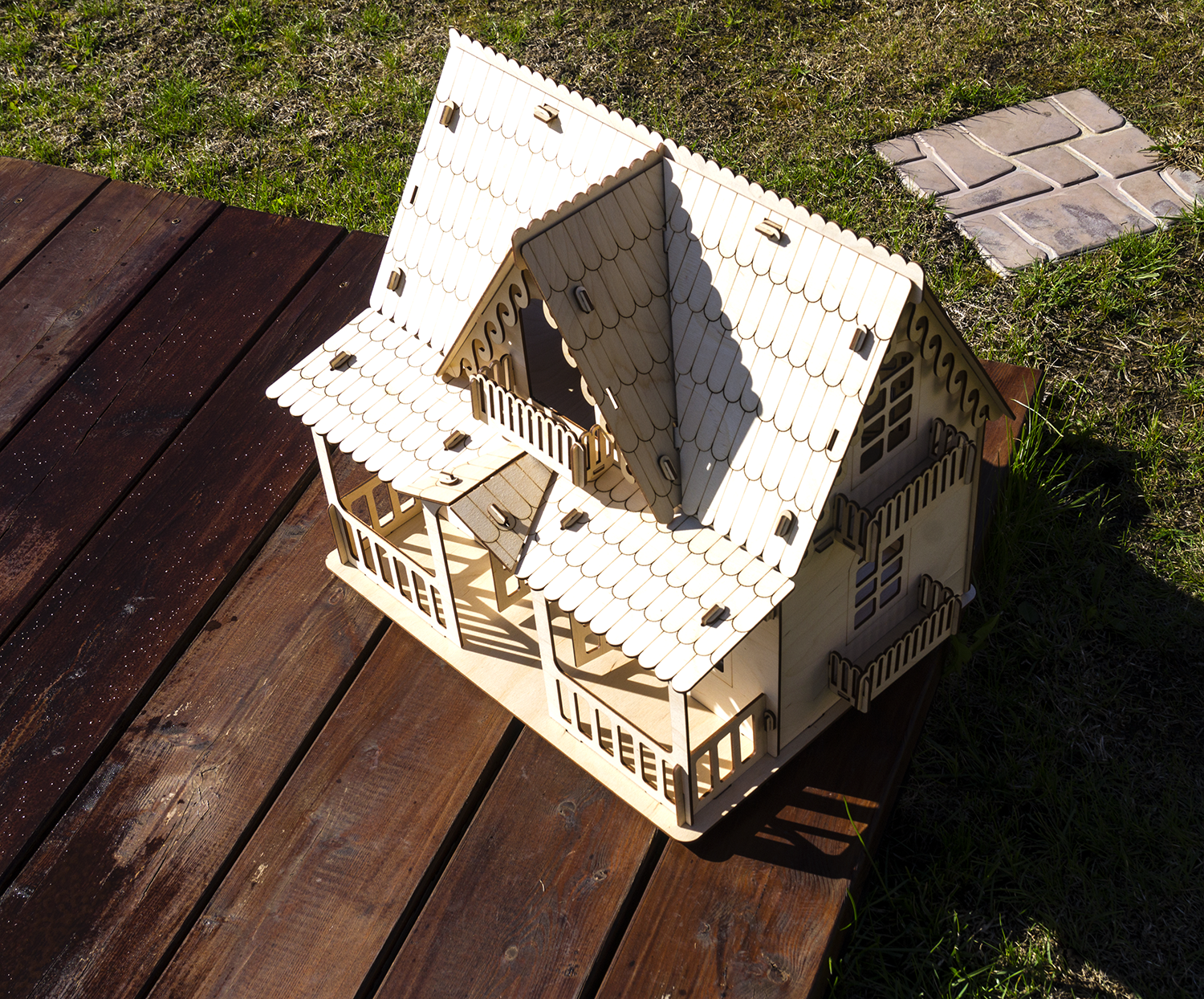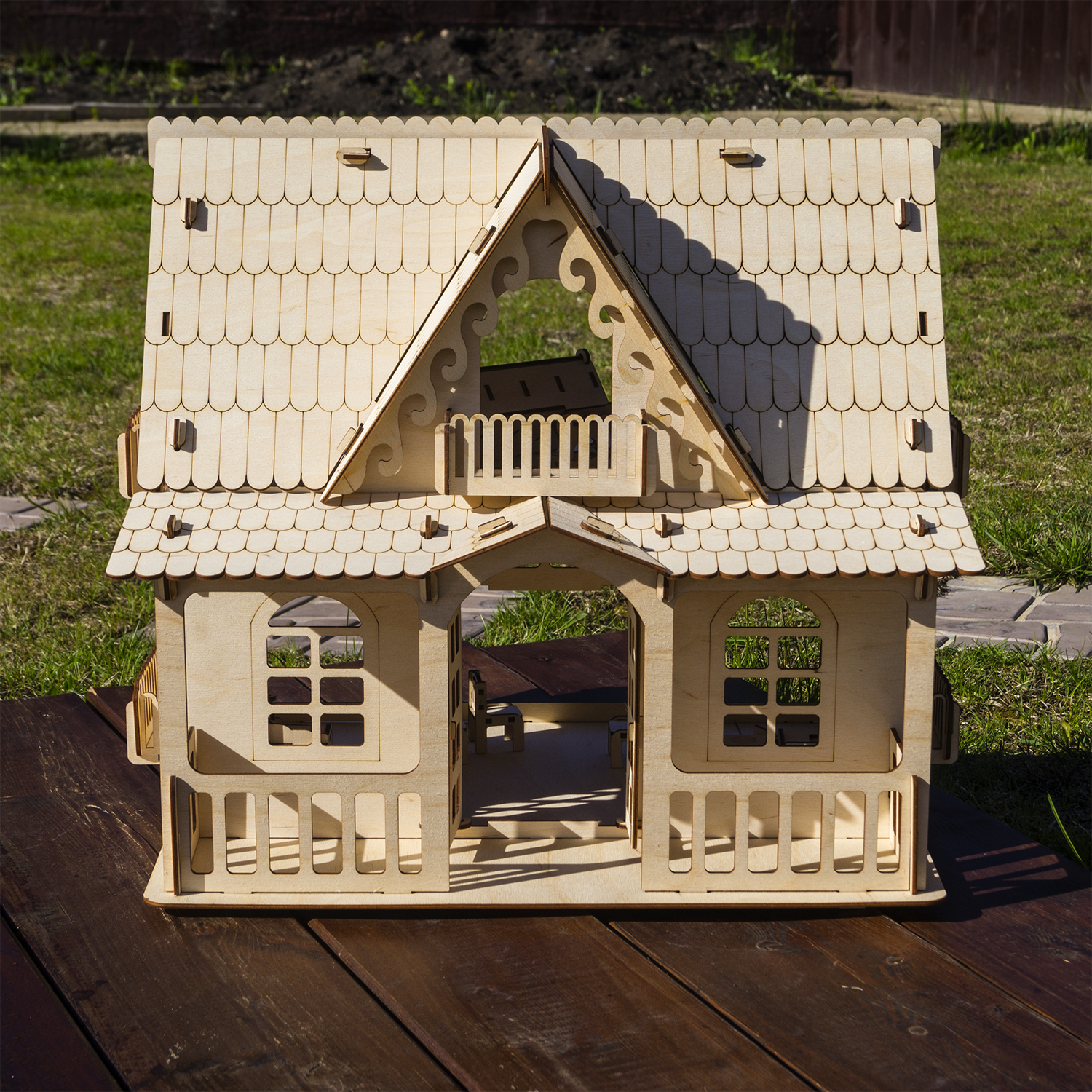 Это не просто конструктор, но и развивающая и увлекательная игрушка для детей. При сборке детали соединяются между собой, как конструктор в пазы. После сборки дом можно покрасить или покрыть лаком и даже поклеить обои, прекрасное "поле" для творчества. Состоит из абсолютно безопасных материалов для детей. Детали вырезаны лазером, ровные края.