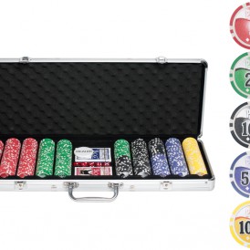 Этот набор для покера на 500 фишек включает качественные фишки с номиналами, а также другие игровые предметы: карты, игральные кости, фишку дилера. Все это упаковано в стальной кейс с ключами.