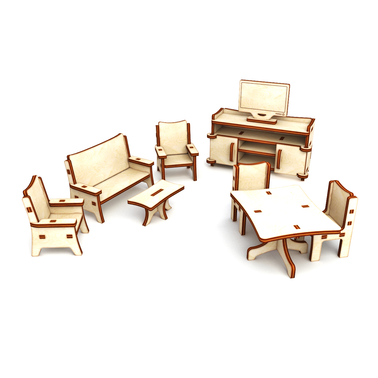 В кукольном домике пустует комната? Отличный зал, с диванам и креслами. Пусть мама сошьет накидки на мебель, и она будет очень уютной.Диван - 80*37*53 мм;