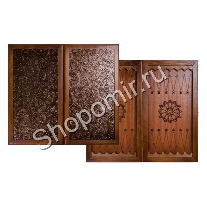 Нарды "Кожаные Цветок" большие (Россия, дерево, 60х30х5 см)