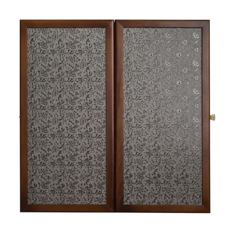 Нарды “Кожаные Серебро” большие продолжают эту восточную традицию. Основным декоративным элементом является покрытие внешней стороны доски из натуральной кожи с объёмным растительным орнаментом и легким серебряным напылением. Обрамление, как и сама доска, сделаны из натурального дерева тёмных тонов, которое эффектно подчеркивает рисунок.