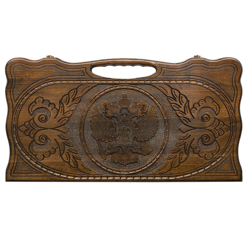 Нарды резные "Герб РФ 2" с ручкой 60
