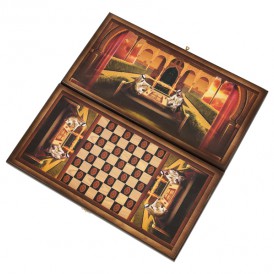Нарды “Сирия Шейхи” большие позволяет нам проникнуться атмосферой востока: центральное изображение, напоминающее древнюю картину, выполнено акриловыми красками, которые не утратят яркость с течением времени.
