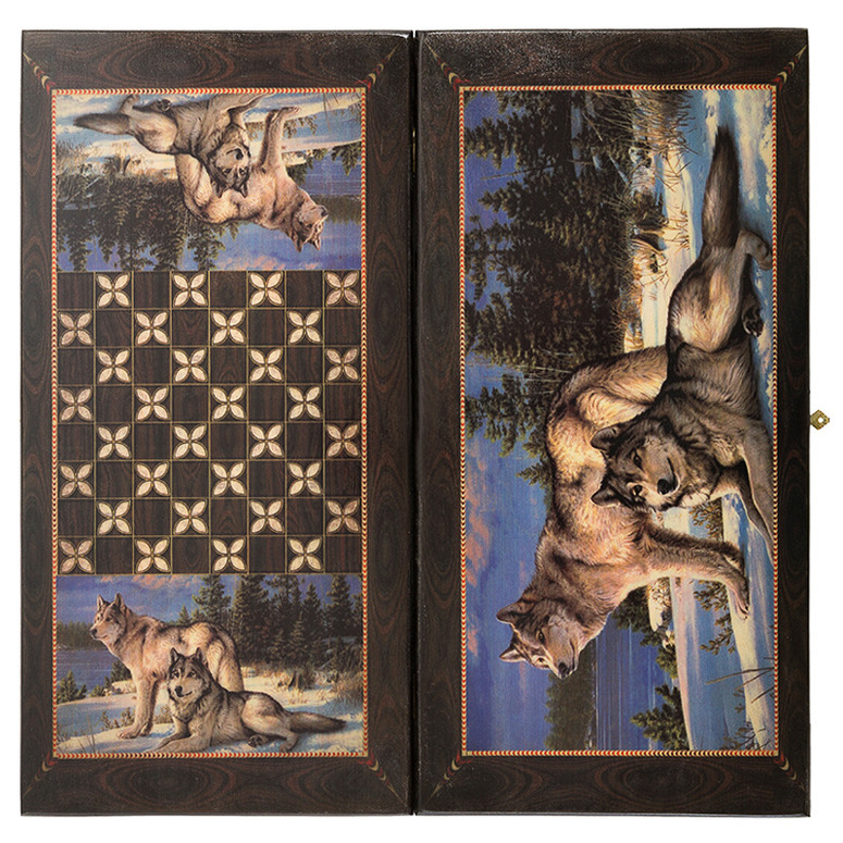 Нарды + шашки Смоленские "2 волка" малые