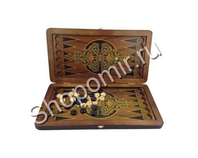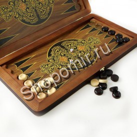 Складная доска нард изготовлена из дерева, снаружи отделка тисненой кожей темно-коричневого цвета - имитацией кожи крокодила, Поле доски украшено по центру витиеватым восточным орнаментом. Желаете купить нарды в Березниках, мы доставляем курьерской службой до Москвы и по всей России. |