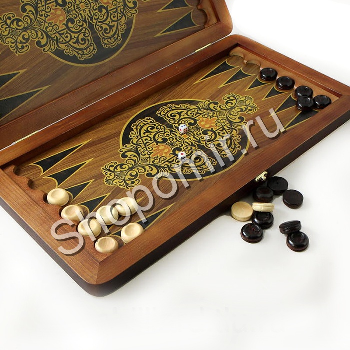 Складная доска нард изготовлена из дерева, снаружи отделка тисненой кожей темно-коричневого цвета - имитацией кожи крокодила, Поле доски украшено по центру витиеватым восточным орнаментом. Задаетесь вопросом, где купить нарды? Мы поможем вам, оформляйте заказ, и мы не заставим вас долго ждать. |