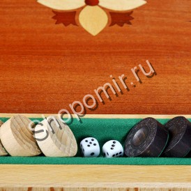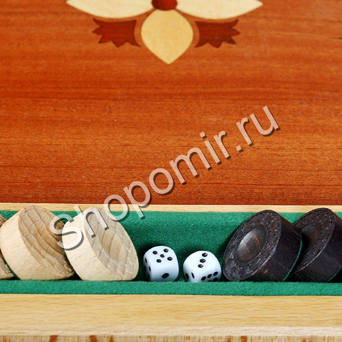 Нарды с инкрустацией шпоном различных пород дерева, с баром для фишек.