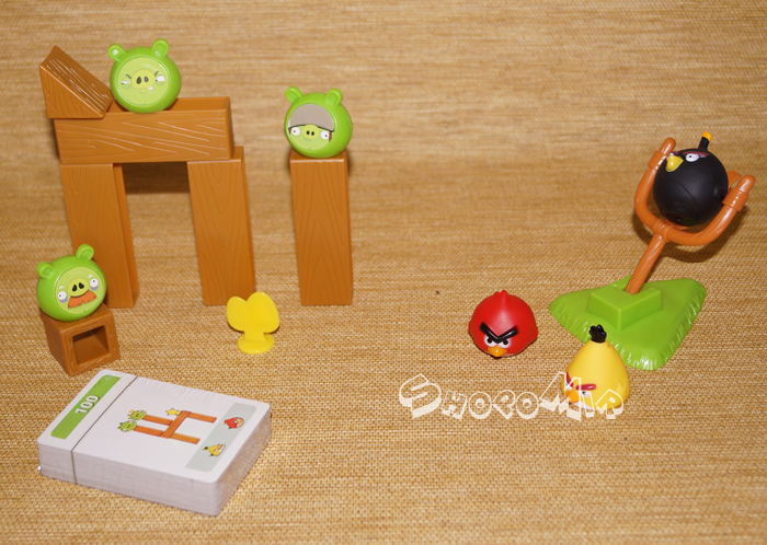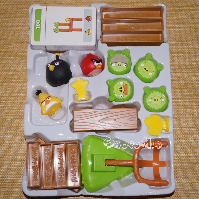 В упаковке: 3 птички, 4 свиньи, рампы, карточки с заданиями.