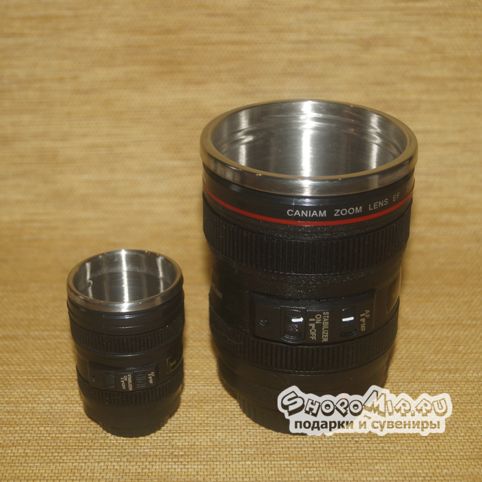 Ведь чудное изделие представляет собой самый настоящий объектив фотоаппарата с завинчивающейся крышкой. Небольшая цепочка и крепкий карабин позволяет использовать миниатюрную стопочку в качестве прикольного брелока для ключей.