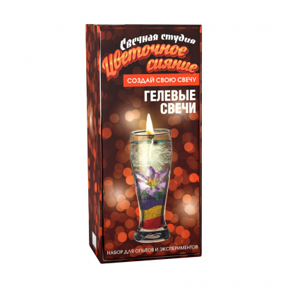 Со свечной студией "Цветочное сияние" каждый сможет создать свою уникальную и неповторимую гелевую свечу. В набор входит все для этого необходимое: стаканчик, гель, песок разного цвета и искусственный цветочек. Следуя простой инструкции на коробке и тщательно выполняя шаг за шагом все действия, вы получите настоящее произведение свечного искусства. Гель для свечки сварен из натуральных компонентов и совершенно безвреден. Свечная студия понравится и взрослым, и детям, а полученное изделие станет хорошим подарком для друзей и знакомых.
