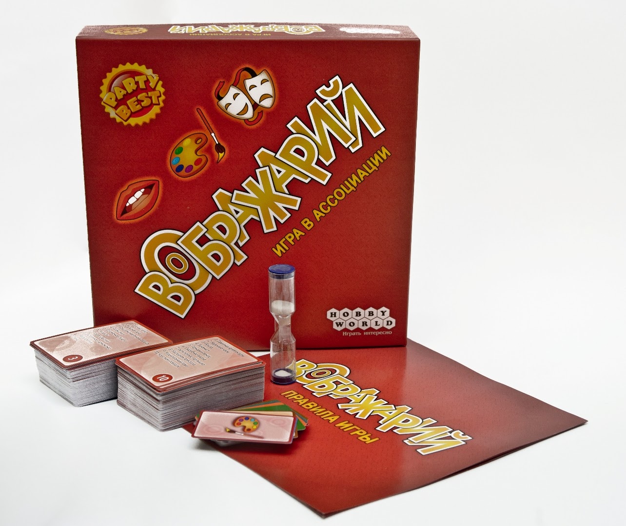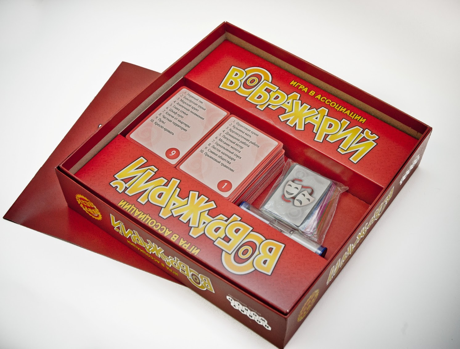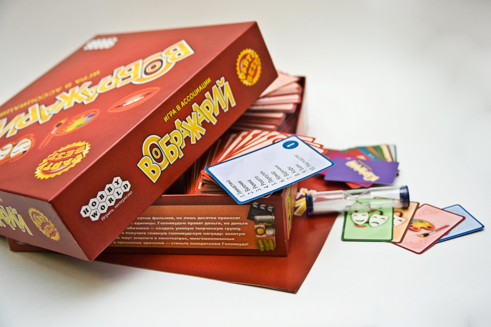 «Воображарий» — увлекательная игра на загадывание и разгадывание слов для весёлой компании. Каждый ход выбирается новый ведущий, который должен объяснить другим слово или словосочетание при помощи рассказа, рисунка или яркого представления. Будьте креативны, изобретательны и общительны, ведь время тикает и каждый момент может стать решающим!